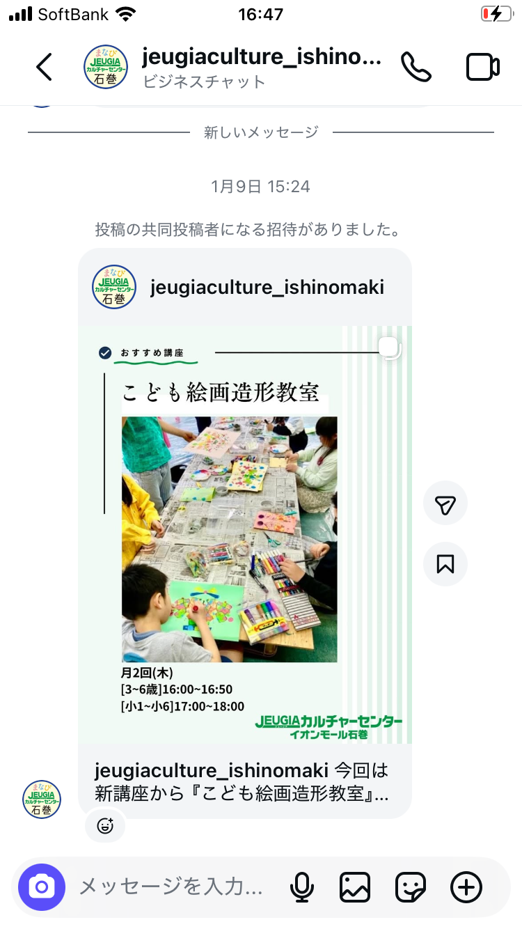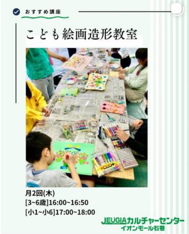 2月より、イオンモール石巻内のJEUGEAカルチャーセンターにて、「子ども絵画造形教室」を担当させて頂く事になりました。